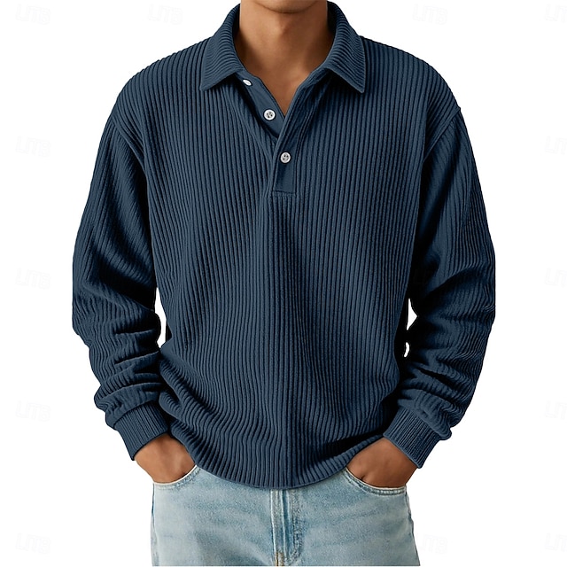 Per uomo Camicia di Velluto a Coste Testurizzato Casuale Sportivo Bavero Manica Lunga Moda Essenziale Blocco di colori Bottoni Caldo Autunno Primavera & Autunno Vestibilità regolare Nero Blu scuro#17803352
