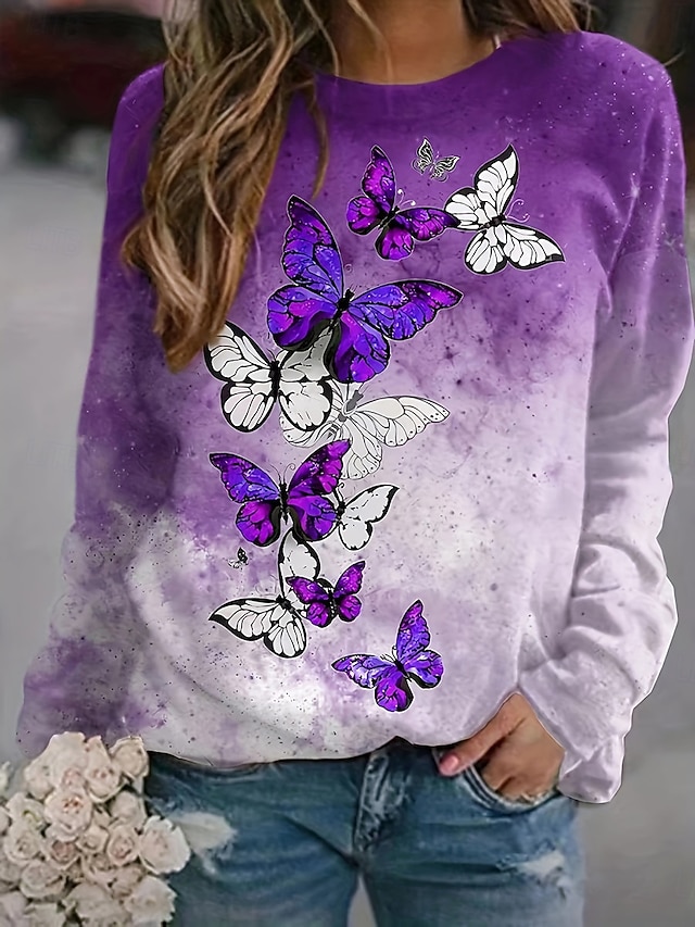 Per donna Felpe con cappuccio Stampato Grafico Farfalla Moda Casual Manica Lunga Girocollo Top Regolari Streetwear Abbigliamento Quotidiano Blu Viola Autunno Inverno #17817129