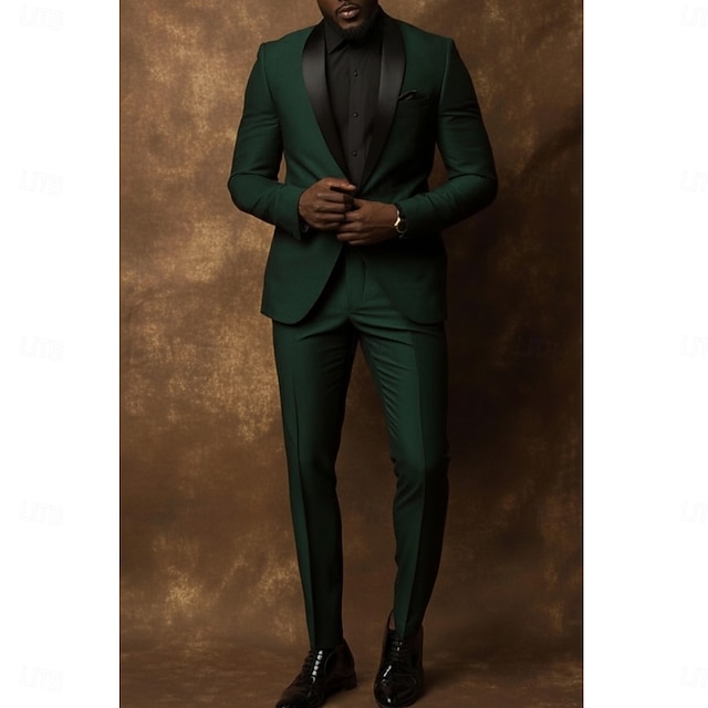 Uomo Abiti da lavoro Casuale Feste Nero Borgogna Primavera, Autunno, Inverno, Estate Tuta Bavero sciallato Formale Tinta unita Vestibilità standard 2 pezzi Monopetto a un bottone#17819304