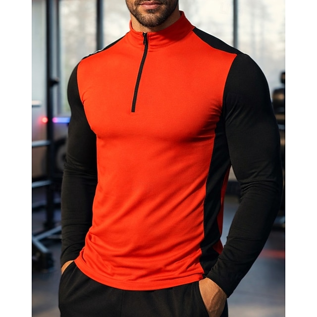 Per uomo Blocco di colori T-shirt da corsa Maglia a compressione Maglia atletica Maglia da corsa Sport in alto Primavera Autunno Patchwork Blocco di colore Cerniera a un quarto Manica Lunga#17834435