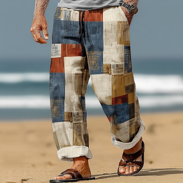 Per uomo Geometrico Blocco di colori Patchwork Pantaloni Pantaloni casual Pantaloni Larghi Misura del girovita medio Moda Casa All'aperto Vacanza Coulisse elastica in vita Pantaloni tipo lino con#17883623