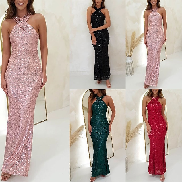 Per donna Abito Lungo Maxi Abito Abito con Paillettes Abito da Cocktail Abito Elegante Moda Moderno Festa serale Cocktail party Vestibilità regolare Semplice Senza Maniche All'americana Nero Rosa #17894546