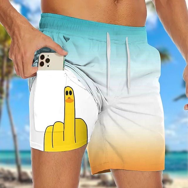 Per uomo Divertente Colore sfumato Anatra Pantaloncini foderati Pantaloncini da bagno 2 in 1 Pantaloncini da mare Misura del girovita medio Hawaiano Ferie Tasche Laterali Con Fodera a Compressione#17990726