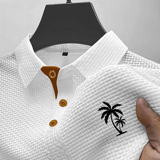 Per uomo Polo in seersucker di seta ghiaccio Maglia da golf Casuale Lavoro Bavero Manica Corta Essenziale Moderno Albero di Cocco Jacquard Bottoni Estate Primavera Vestibilità regolare Blu Nero #18040205