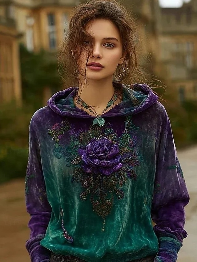 Per donna Felpa con cappuccio Floreale Grafico Tinta a nodi Elegante Punk Vintage Manica Lunga Con Cappuccio Top Regolari Casuale Casa Streetwear Blu Giallo Rosso Verde Primavera Autunno Inverno#18158970