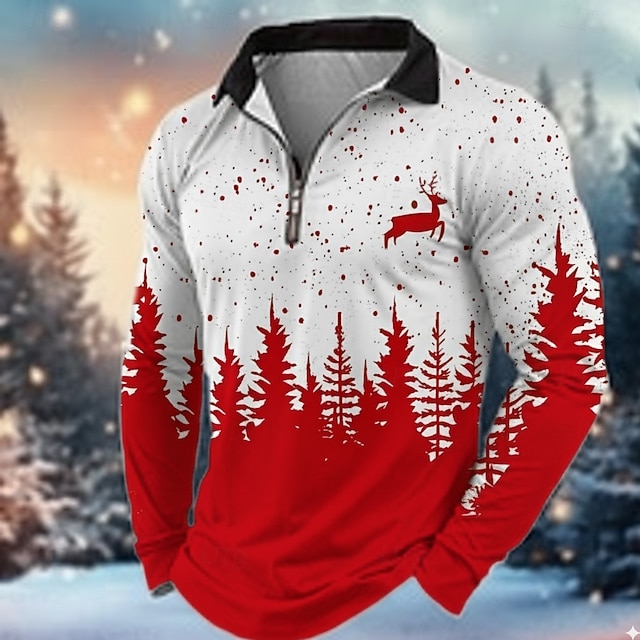 Natale Per uomo Renna Polo Manica Lunga Collo ripiegato Moderno Tempo libero Sport & Outdoor Athleisure Festival Cerniera Stampa 3D Primavera Autunno Inverno Blu Nero Rosso#18286490