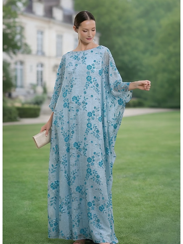 Linea ad A Abito Lunghezza al pavimento Abito da invitata a nozze Abito Formale Abito da sera Abito da cerimonia per signora Mezza Manica Scollo a Barca Elegante Semplice Abbellito Formale Chiffon #18463632