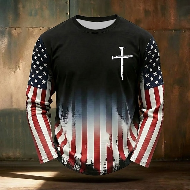 4 luglio 2026 250° Memorial Day Maglietta a maniche lunghe da uomo con Bibbia Patriottica Patriot Bandiera Americana Casual#18528635