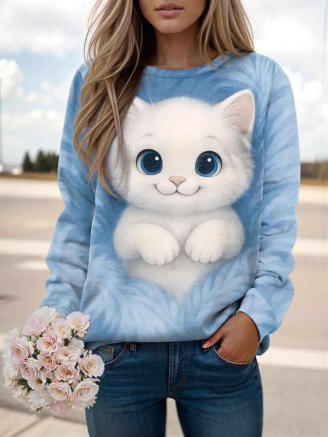 Per donna Felpa Pullover Stampato Grafico Animale Gatto Casual Manica Lunga Girocollo Top Regolari Casuale Streetwear Ferie Blu Rosa Viola Verde Primavera Autunno Inverno #18707657
