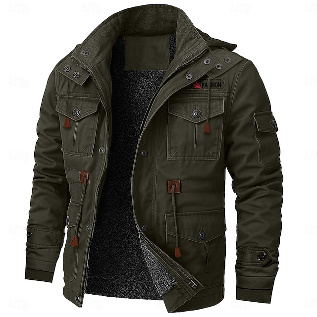 Per uomo Cappotto Invernale Giacca Invernale Giacca in Pile Giacca da Lavoro Streetwear Casuale Antivento Caldo Tasca Autunno Inverno Tutte le stagioni Casual Pantaloni Tattici Con Cappuccio Nero #18808885