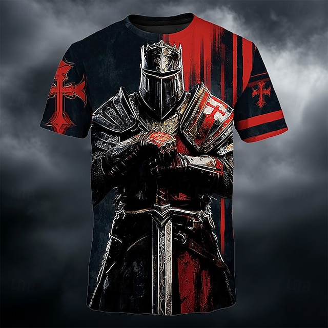 Maglietta Crociati Cavalieri Templari Medievale Crociato Guerriero Corazzato Croce Rossa Spada Gotico Fantastico T-Shirt Stampa tutto sopra a maniche corte Collo rotondo Casual RPG Cosplay Maglietta#18821026