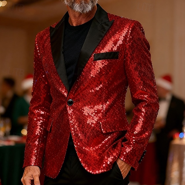 Per uomo Blazer Cocktail party Ricevimento di matrimonio Moda Casual Primavera & Autunno Poliestere Semplice Tasca Bottoni Confortevole Monopetto Giacca Rosso Oro Verde#19002312