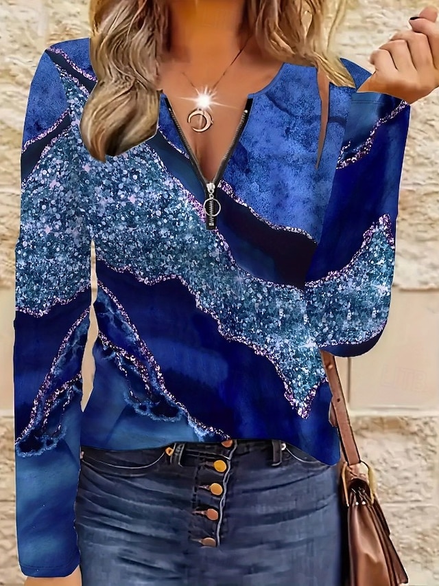 Per donna Maglietta Cerniera Stampato Grafico Geometrico Astratto Vintage Moda Elegante Manica Lunga Girocollo Top Regolari Quotidiano Blu Rosa Viola Primavera Autunno #19038669
