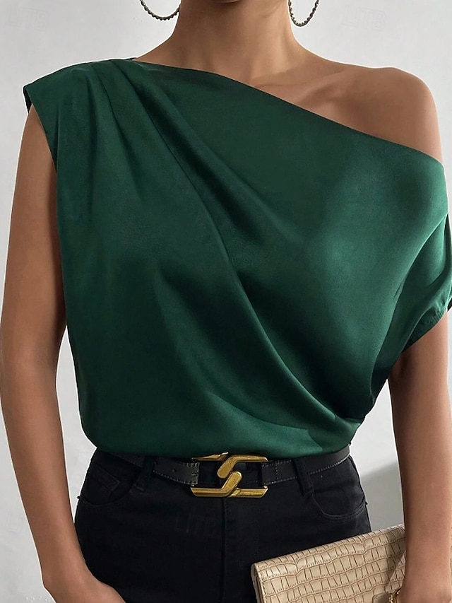Per donna Camicia Elegant Top in raso Blusa Senza schiena Semplice Vintage Elegante Senza Maniche Asimmetrico Top Regolari Quotidiano Ferie Uscire Nero Verde chiaro Verde smeraldo Albicocca Estate #19046148