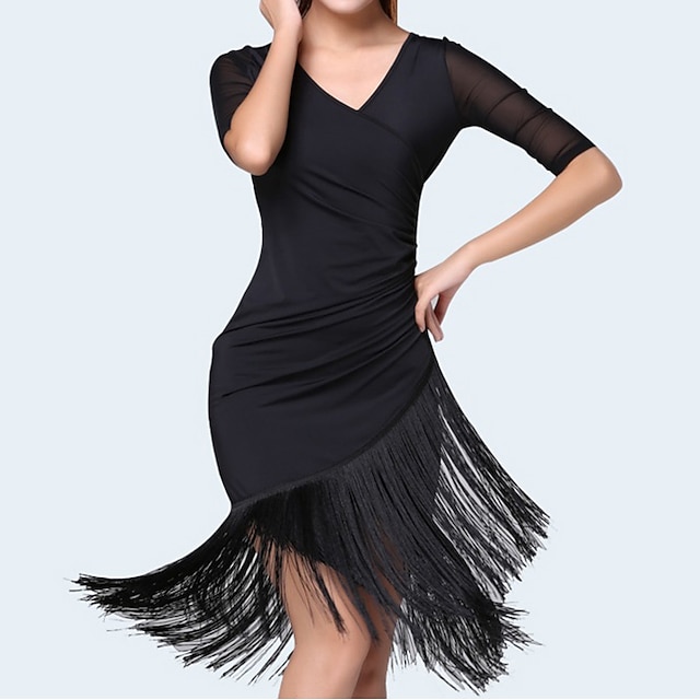 [Tessuto]: Realizzato in fibra di latte di alta qualità, questo vestito da attività combina poliestere e spandex per offrire una texture morbida e una comoda elasticità. Il tessuto è leggero ma resistente, rendendolo ideale sia per le prove che per le esibizioni. [Silhouette]: Il vestito presenta un design aderente con una scollatura a V che valorizza la figura e maniche a tre quarti, creando una silhouette elegante che si adatta al corpo consentendo al contempo libertà di movimento. [Caratteristiche di Design]: Il tratto distintivo di questo vestito è l'orlo frangiato dinamico, che aggiunge movimento vivace e fascino all'insieme. La vita arricciata asimmetrica migliora ulteriormente il suo fascino sofisticato, mentre la combinazione di colori solidi e decorazioni con nappe crea un effetto visivamente sorprendente. [Occasioni]: Perfetto per esibizioni di danza, sessioni di allenamento e altre occasioni attive. Questo vestito unisce stile e funzionalità, rendendolo un'ottima scelta per le ballerine che cercano eleganza e praticità. [Gamma di Taglie]: Disponibile in un'ampia gamma di taglie da M a 4XL, adatta a diversi tipi di corpo e garantendo una vestibilità comoda per le donne adulte.