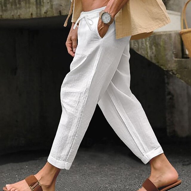Per uomo Pantaloni di Lino Pantaloni Pantaloni Estivi Pantaloni da Spiaggia Coulisse Elastico in vita Gamba Dritta Semplice Comodità Traspirante Casuale Quotidiano Ferie Moda Stile Classico Nero #9562544