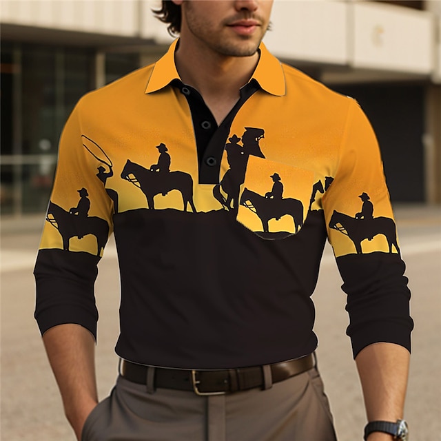Per uomo Cowboy Polo Polo a maglia intrecciata Manica Lunga Magliette polo Collo ripiegato Vintage All'aperto Abbigliamento casual alla moda Casual Quotidiano 3D Stampato Estate Rosa Rosa scuro Viola #9781363