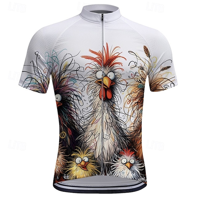 [Punti salienti del design] La maglia è decorata con una vivace e giocosa stampa animale, che mostra galline colorate e cartoonish che aggiungono un tocco fantasioso ed energico al tuo guardaroba da ciclismo. I colori brillanti e le illustrazioni dettagliate in stampa 3D ti assicureranno di distinguerti sulla strada, combinando praticità con un pizzico di umorismo.