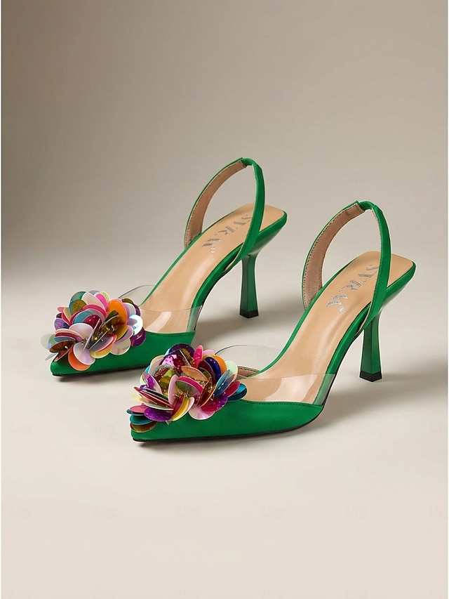 Genere:Per donna,Tipo di scarpa:Tacchi a spillo,Materiali:Finta Pelle,Forma del piede:Punta a Punta,Tipo di chiusura:Mocassino,Tipo di tacco:Stiletto,Abbellimenti:Glitter,Stile:Vacanza,Moda,Occasione:Vacanza,Feste,Serate al resort,Altezza del tacco (pollici):3.15,Stagione:Autunno,Estate,Primavera,