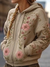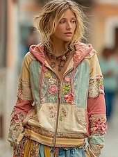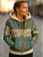 Genere:Per donna,Stile:Attivo,Vintage,Casual,Etnico,Occasione:Casa,Uscire,Sportivo,Casuale,Modello top:Felpe con cappuccio,Scollatura:Con Cappuccio,Tessuto:Poliestere,Design:Cerniera,Lunghezza della manica:Manica Lunga,Elasticità:Inelastico,Delicato:Lavaggio a macchina,Lunghezza del top:Top Regolari,Fantasia/motivo:Grafico,Stagione:Autunno,Inverno,Taglio dell'abito:Vestibilità aderente,Categoria:Felpa,