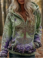 Felpe con cappuccio e zip da donna in stile vichingo, stile boho, grafiche, attive, vintage, etniche, a maniche lunghe, con cappuccio, normali, per la casa, casual, sportive, con cerniera, grigio#18085407