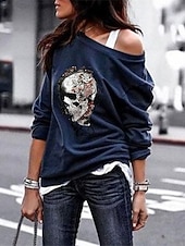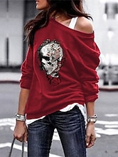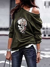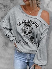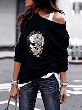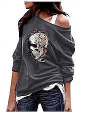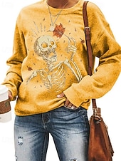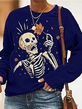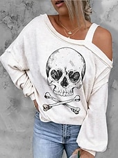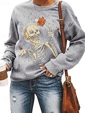 Per donna Felpa Pullover Grafico Teschio Halloween Attivo Moda Streetwear Manica Lunga Girocollo Top Regolari Streetwear Abbigliamento Quotidiano Casuale Stampato Nero Autunno Inverno #12919364