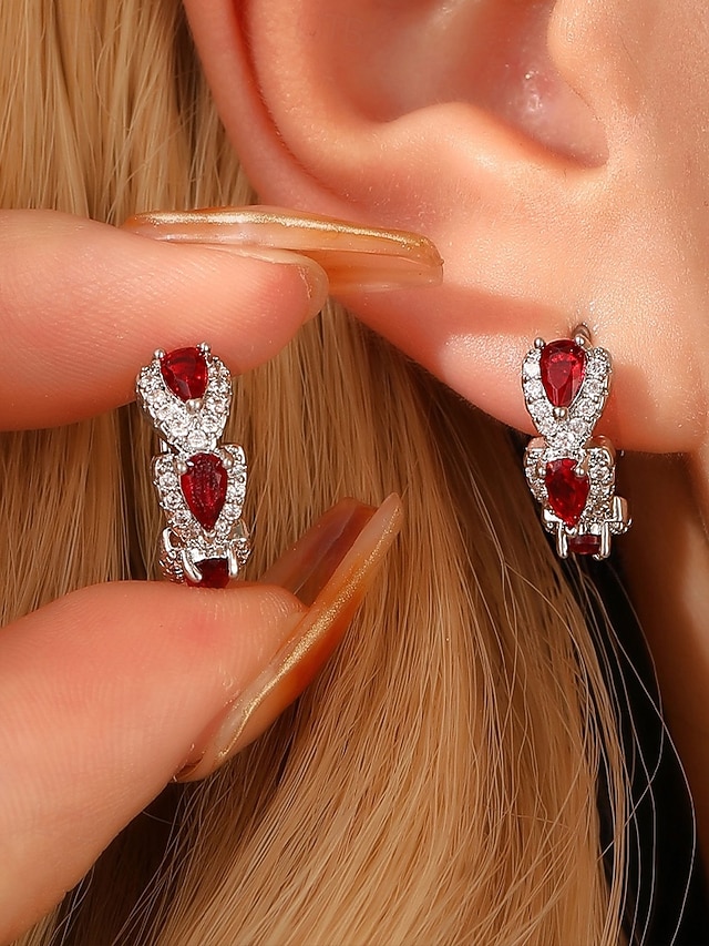 orecchini da donna in lega di zirconi - elegante design a forma di lacrima con pietre multicolori, perfetti come regali di Natale e San Valentino#11426914