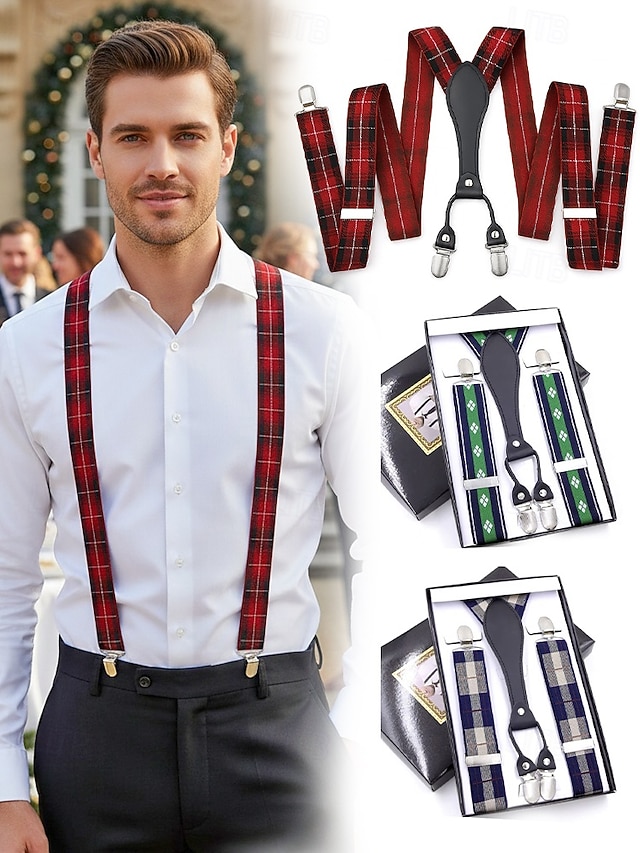 bretelle natalizie da uomo: tessuto elastico con molteplici fantasie, regolabili ed eleganti, perfette per feste e occasioni formali#19903070