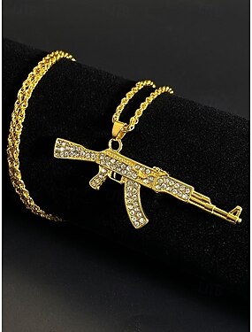 Collana con ciondolo in lega da uomo con design a pistola in strass, catena di gioielli hip hop scintillanti, accessorio di moda per feste, concerti e streetwear