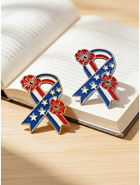 Set di spille da donna in lega con nastro a forma di fiore, spille patriottiche oro e argento per la celebrazione del 250° anniversario dell'America, il giorno dell'indipendenza, abiti da sera e