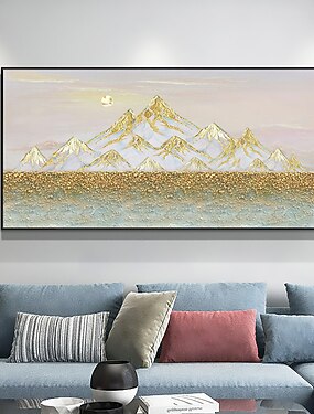 pittura a olio fatta a mano su tela decorazione artistica da parete pittura di montagna in foglia d'oro originale pittura di paesaggio astratta per la decorazione domestica con cornice allungata /