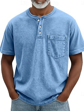 Per uomo Maglia Henley Camicia 100% cotone lavaggio acido Maglietta Manica Corta Retrò Vintage Casual Cardigan con Bottoni Tasca Tinto in capo Henley Casuale Estate Primavera Autunno Marrone scuro