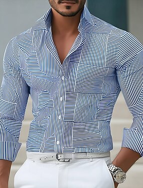 Per uomo Geometrico A righe Camicia Camicia con Bottoni Camicia casual Manica Lunga Moda Casual All'aperto Abbigliamento Quotidiano Primavera Autunno Collo ripiegato Stampa 3D camicie con colletto