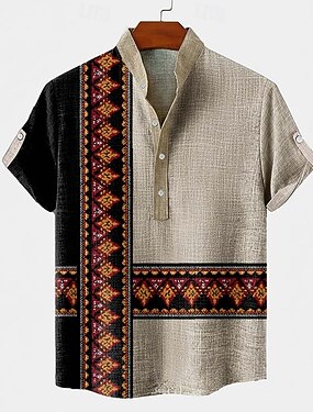Per uomo Motivo Geometrico Etnico Camicia Camicia button-down Manica Corta Vintage Retrò Ferie Casual Quotidiano Estate Primavera Colletto Mao Colletto Henley Stampa 3D Camicia tipo lino Cáqui Escuro