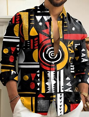 Per uomo Geometrico Arte astratta Camicia Camicia con Bottoni Manica Lunga Vintage Retrò All'aperto Casuale Ferie Primavera Autunno Collo ripiegato Stampa 3D camicie con colletto Giallo Rosso Blu