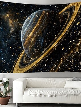 Arazzo Pianeta Universo Appeso Arte da Parete Grande Arazzo Murale Decorazione Fotografica Sfondo Coperta Tenda Casa Decorazione Camera da Letto Soggiorno Nero Oro
