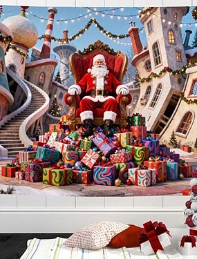 Arazzo Murale di Natale Colorato Babbo Natale con Luci Arazzo 2025 Decorazione Festiva di Natale per Camera da Letto Soggiorno Festa e Decorazione Esterna