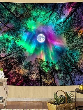arazzo aurora boreale luna piena foresta arazzo da parete estetica galassia cielo notturno per camera da letto soggiorno sala yoga spazio di meditazione