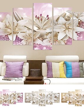 5 pannelli pittura giglio dorato pittura murale pittura decorativa nucleo pittura senza cornice