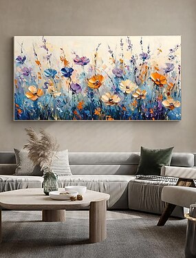 dipinto a mano originale di fiori colorati dipinto a olio su tela dipinto di gruppo di fiori con texture astratta arte murale per l'arredamento della casa con cornice tesa/senza cornice interna