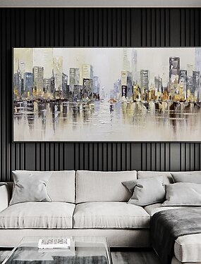 A mano Fatto a mano Hang-Dipinto ad olio Dipinta a mano Panoramica orizzontale Astratto Architettura Moderno Realismo Senza telaio interno (senza cornice)