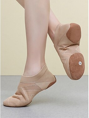 scarpe da ballo jazz beige con suola divisa per donna – ballerine in maglia elasticizzata morbida per l'allenamento in studio