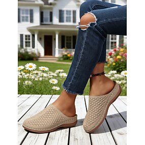 mocassini da donna beige senza lacci e traforati: comode scarpe estive per il tempo libero, i viaggi e l'uso quotidiano.