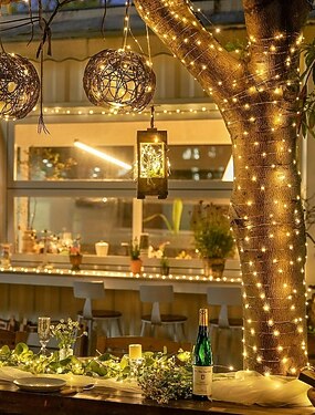 luci della corda del led luci della stringa del led esterno impermeabile ip65 lucine natalizie 30m-300leds 22m-200leds 12m-100leds 7m-50leds 8 modalità dimmerabile a batteria/timer con telecomando per la festa
