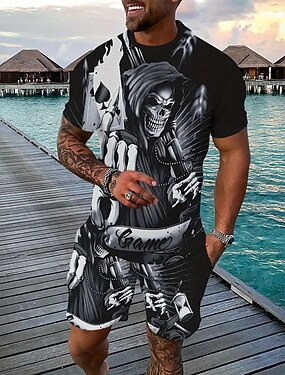 Per uomo Teschio 2 pezzi Set di magliette Manica Corta Pantaloni corti Girocollo Scuro Streetwear Sport Quotidiano Stampa 3D Estate Grigio