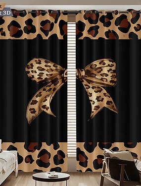 Tende oscuranti perforate con stampa digitale 3D, stampa leopardata, fiocco, isolamento, balcone esterno, riposo, soggiorno, decorazione per la casa, set da 2 pezzi