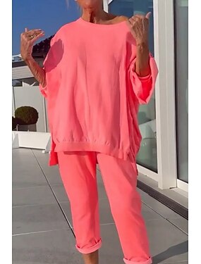 Per donna Set di Pantaloni Manica Lunga Girocollo Tinta unica Moda Streetwear Casuale Quotidiano All'aperto Blu Nero Rosa Estate Vestibilità regolare