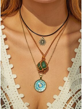 Set di collane a strati da donna in stile bohémien, realizzate con materiali misti, composto da 3 pezzi. Perfetto per il tempo libero e le vacanze al mare, ideale per outfit boho quotidiani.