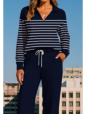 Set di tuta sportiva donna 2 pezzi felpa e pantaloni jogger pantaloni da tuta a lungo maniche girocollo strisce stampa cordoncino casual all'aperto rosso blu verde