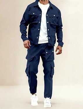 Per uomo Giacca Leggera Giacca Cargo Giacca Casual Set Vacanza Quotidiano Traspirante Tasca 2 Pezzi Primavera Autunno Semplice Moda Classico Bavero Regolare Nero Blu marino Cachi Giacca